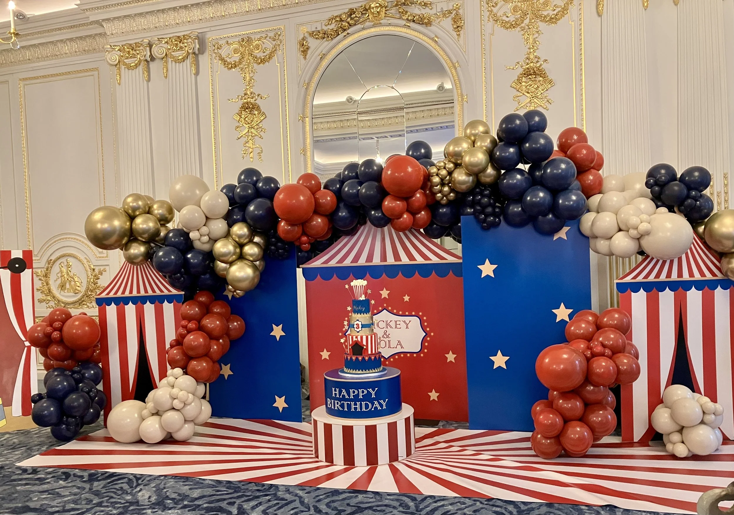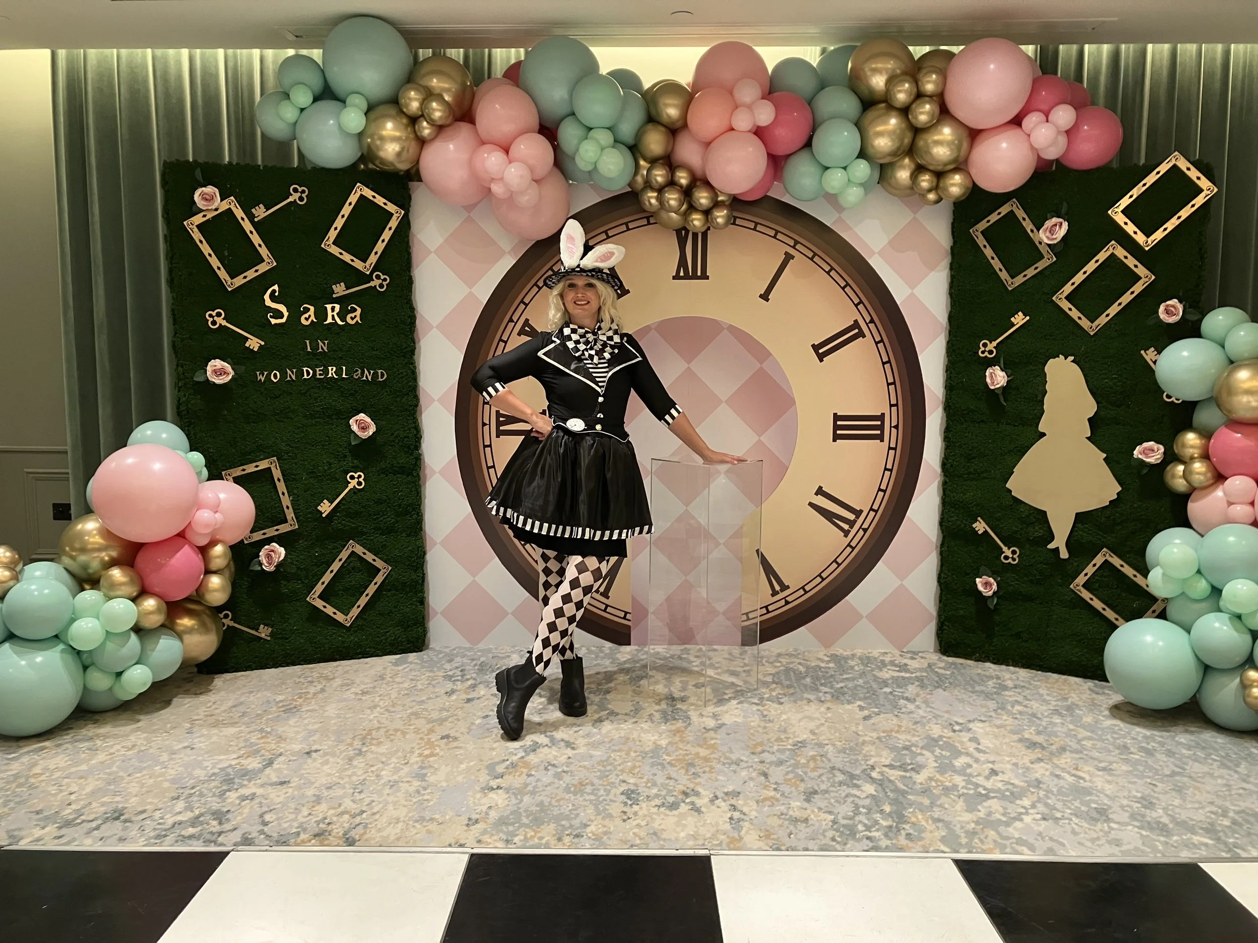 A themed party backdrop with a stunning balloon display